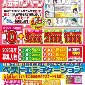 「転塾特典(更に5,000円のクオカード進呈)」や、一人一人に合わせたカリキュラムの「春期講習」(実施期間3/23~4/3)キャンペーンもご用意。