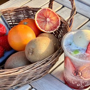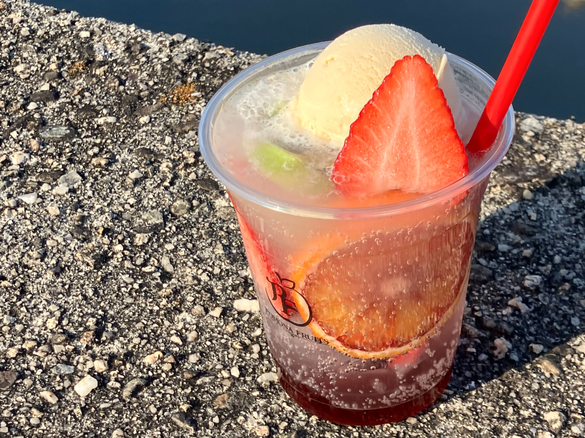 果物の良さを知り尽くした専門店だからこそできる、旬の果物を詰め込んだクリームソーダ。今の時期は、いちご(紅ほっぺ)にタロッコオレンジにキウイ♪