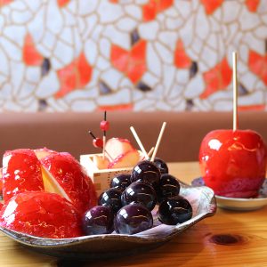 大きなりんごを丸ごと飴でコーティングした、定番の「りんご飴」も♪