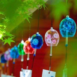 10種類の中から好きな風鈴を選び、短冊に願いを書いて吊るしましょう◎