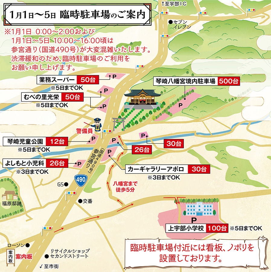 1月1日~1月5日は、周辺の店舗・施設を臨時駐車場としてご利用いただけます。