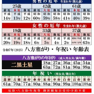 本年の「厄年」「八方塞がり」の方は、節分までにお祓いしましょう!