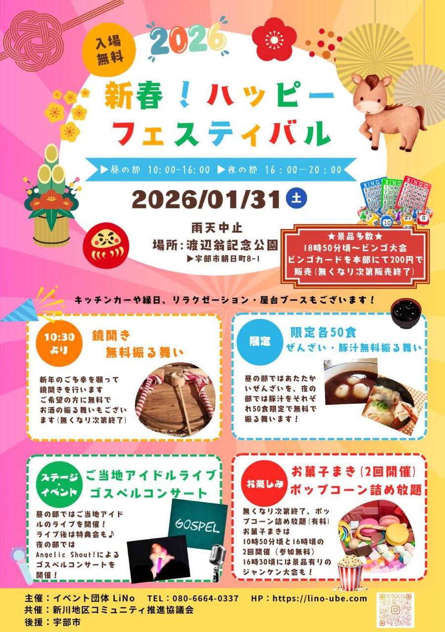 1月31日、宇部市渡辺翁記念会館で「新春!ハッピーフェスティバル」が開催されます。
