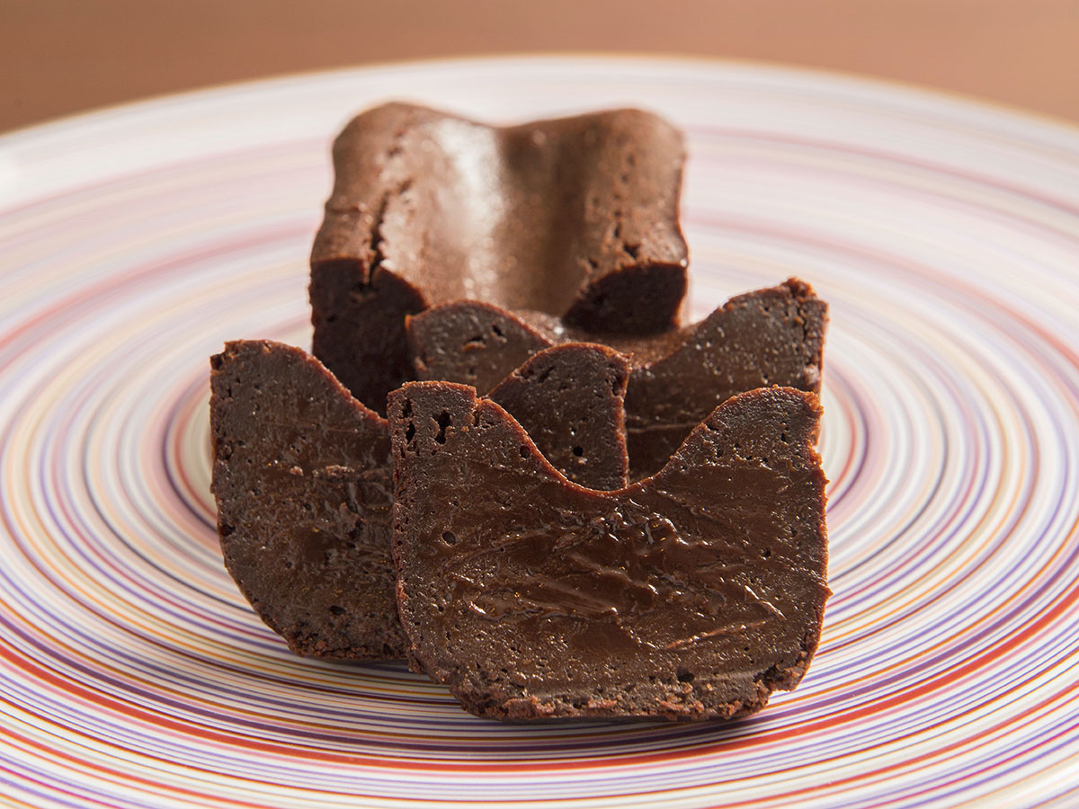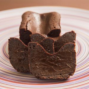 常温ではテリーヌショコラ、冷やすと生チョコ感覚、レンジで軽く温めるとフォンダンショコラのようにと、温度によって変化するさまざまな食感と口溶けが特徴です。