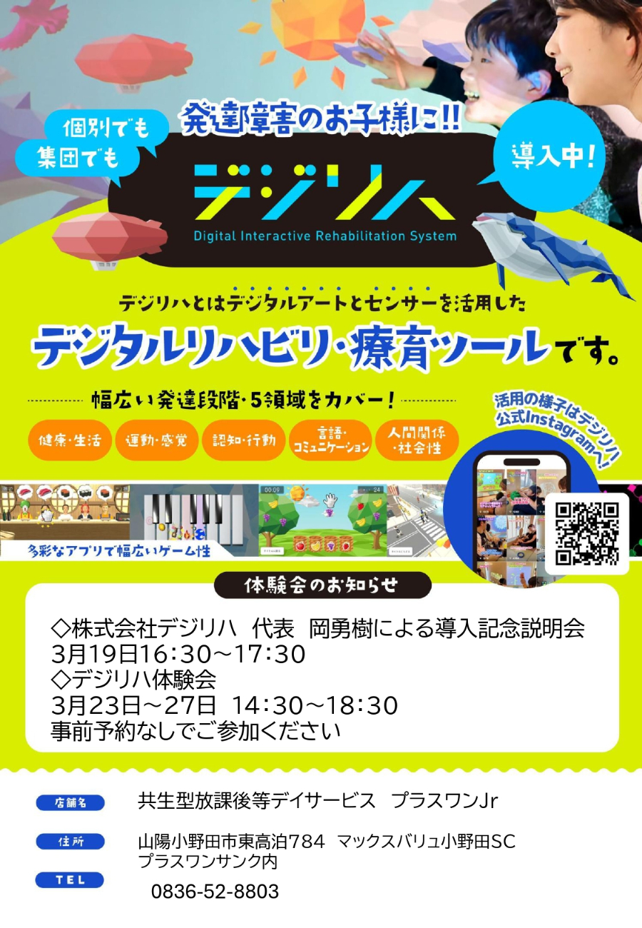 山陽小野田に共生型放課後等デイサービス「Plusone Jr.(プラスワンジュニア)」がオープン!