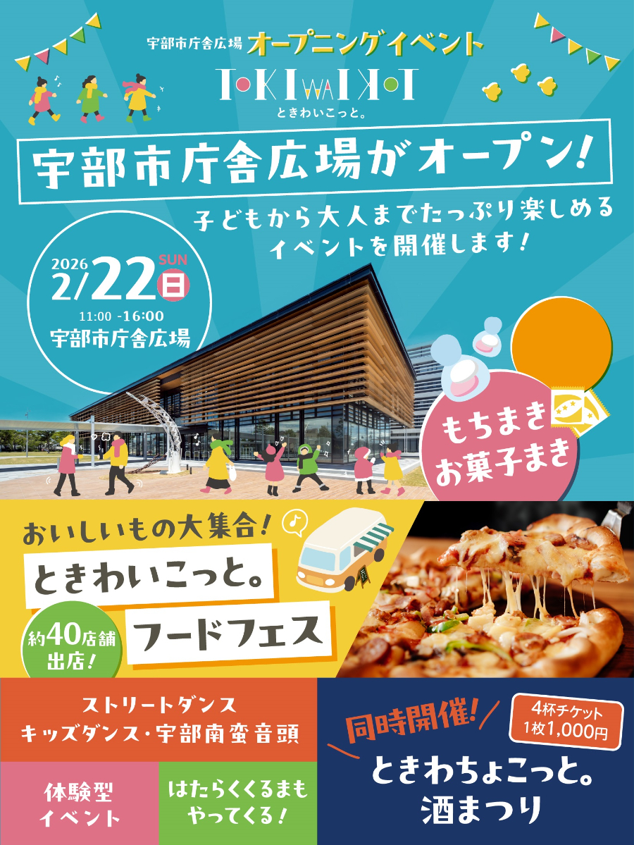 このほか、DJやダンスパフォーマンス、伝統の宇部南蛮音頭、はたらくくるまの展示、餅まきやお菓子まきなど、子どもから大人まで楽しめるイベント盛りだくさん!