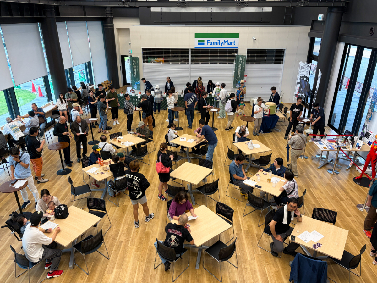 市民交流棟・交流ホール内に、山口の地酒が大集合。