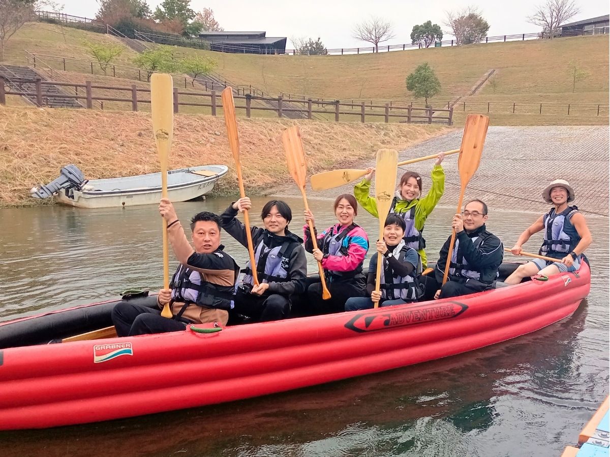 ゴムボートをみんなで漕いで、プチアドベンチャー!