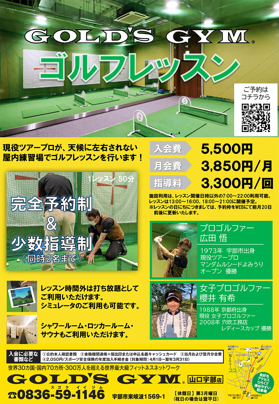 宇部の「ゴールドジム」で現在、「ゴルフレッスン」を実施しています。