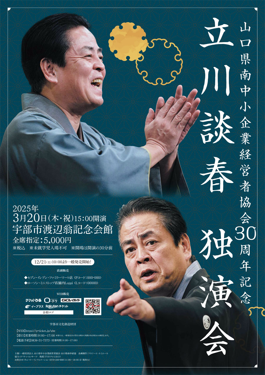 人気ドラマや映画で俳優としても活躍する談春師匠の、独特な語り口と絶妙な話芸をお楽しみください!